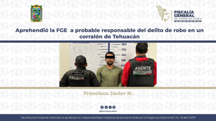 La Fiscalía General del Estado dio cumplimiento a la orden de aprehensión en contra de Francisco Javier N., de 29 años de edad, por su probable responsabilidad en el delito de robo agravado ocurrido en el municipio de Tehuacán, Puebla.