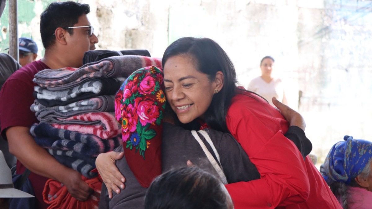 La presidenta municipal de Atlixco, Ariadna Ayala, encabezó la entrega de cobijas a 234 familias de la comunidad de San Pedro Benito Juárez.