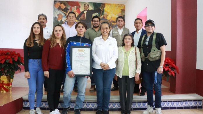 La presidenta de Atlixco, Ariadna Ayala, entregó el Premio Municipal del Deporte 2024 al joven taekwondista, Elios Berra Juárez.