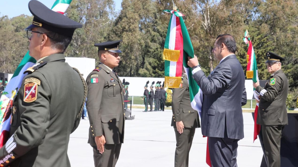 Durante la conmemoración del Día de la Bandera en la explanada de la Escuela Militar de Sargentos, en la XXV Zona Militar, el ejecutivo estatal expresó que el lábaro patrio representa la lucha del pueblo de México por su independencia, la defensa del territorio y la construcción de un país libre.