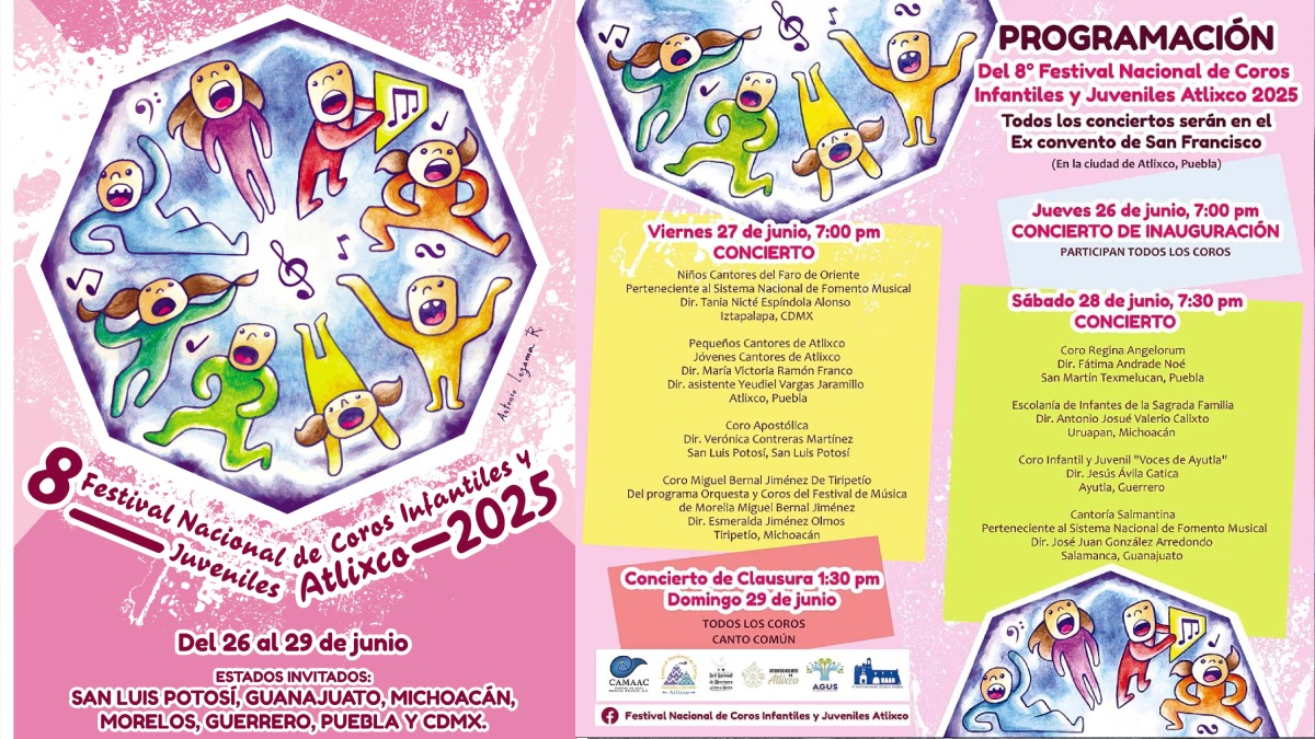 Con el respaldo de la presidenta municipal Ariadna Ayala, Atlixco se consolida como un referente cultural en el estado al abrir nuevamente sus puertas para recibir talento de distintos puntos del país, en el marco del Octavo Festival Nacional de Coros Infantiles y Juveniles, que se celebrará del 26 al 29 de junio.