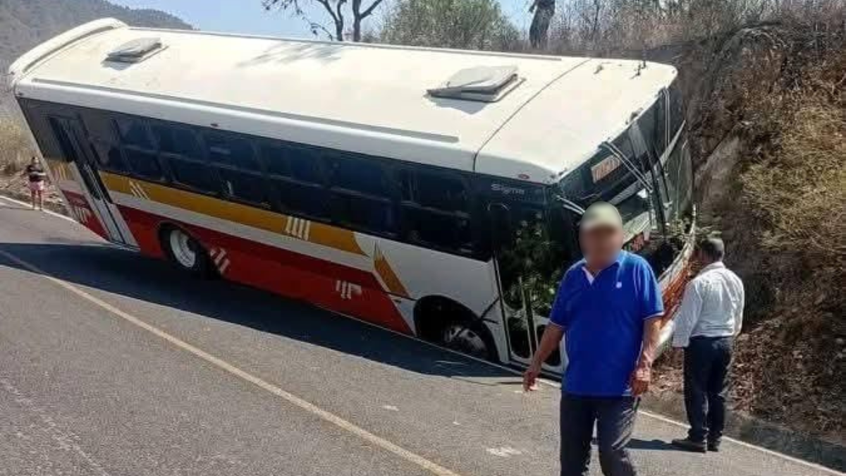 Un autobús de pasajeros estuvo a punto de caer a un barranco después de impactar contra la ladera de un cerro mientras descendía por las curvas de la comunidad de Pala, sobre la carretera Coxcatlán-Zoquitlán, en la Sierra Negra de Puebla.