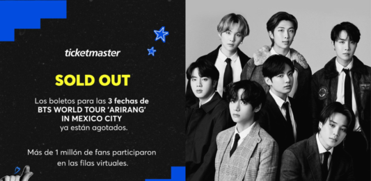 Ticketmaster confirmó que los boletos para los tres conciertos que la banda surcoreana BTS ofrecerá en la Ciudad de México se agotaron este sábado en menos de una hora, tras el arranque de la venta general. La alta demanda dejó sin entradas para las fechas programadas del próximo 7, 9 y 10 de mayo de … Sigue leyendo Boletos para BTS en México se agotan en menos de una hora