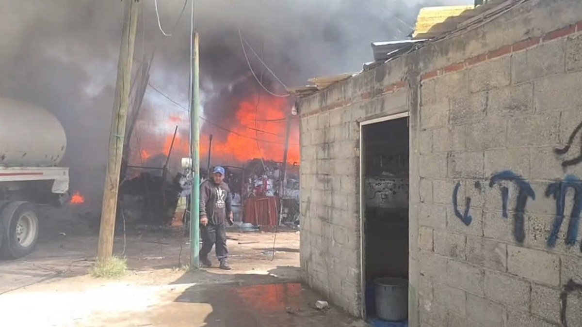 Un aparatoso incendio de material de reciclaje se presentó en la colonia El Planetario, en el municipio de San Martín Texmelucan. Bomberos y voluntarios se sumaron a las labores para sofocar las llamas, que generaron una intensa columna de humo.