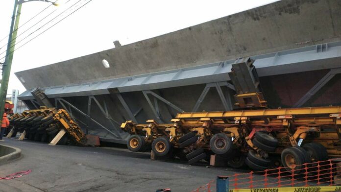 Una trabe de concreto de alrededor de 300 toneladas de peso, cayó esta a las 4:00 horas de este miércoles, sobre la Calzada Ermita, en Iztapalapa.