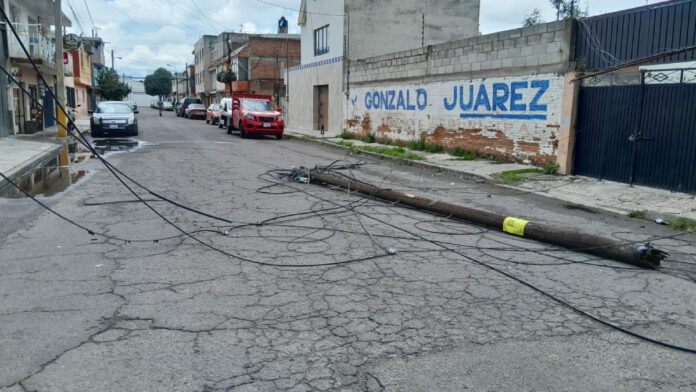 Sin embargo, los postes se encuentran tirados sobre la calle, al igual que los cables que cuelgan, situación que es peligrosa para los transeúntes; sólo fueron a poner una cinta amarilla. Protección Civil no ha acudido al lugar para levantar los postes.