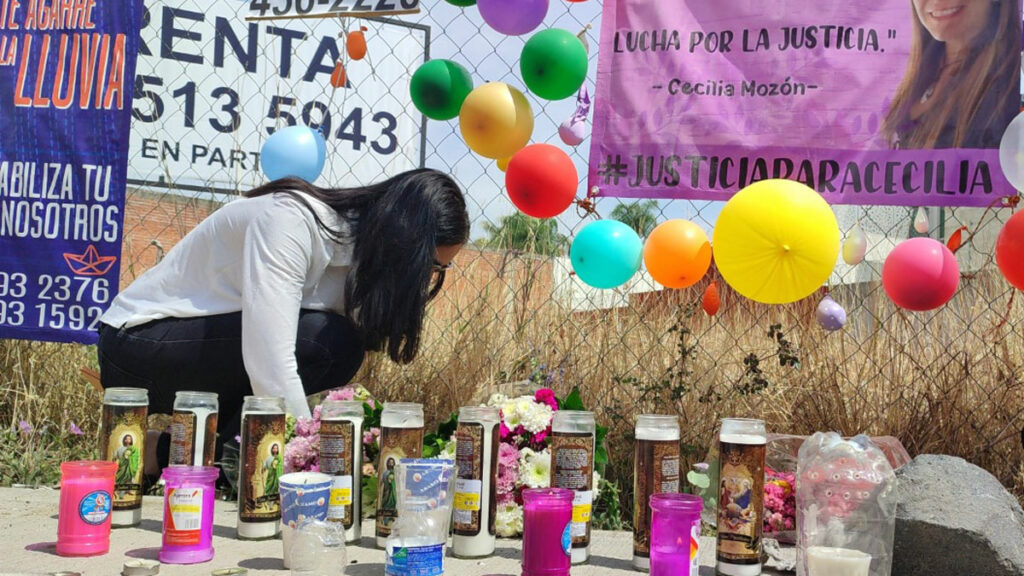 A ocho días del feminicidio de Cecilia Monzón, su hermana y colectivos feministas le dejaron una ofrenda con flores y veladoras en el sitio donde ocurrió el feminicidio.