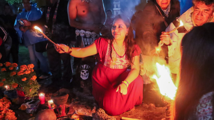 Posteriormente, acompañada por danzantes tradicionales, la edil se trasladó al Convento de San Gabriel Arcángel, donde se realizó una ofrenda floral en memoria de las víctimas de aquel suceso ocurrido hace más de cinco siglos.