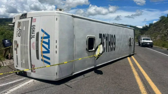 El accidente ocurrió a la altura del kilómetro 43, cerca de la caseta de Chignahuapan, en dirección a Huauchinango, cuando la unidad número económico 203 de la empresa ATAH volcó y quedó recostada sobre su costado derecho.