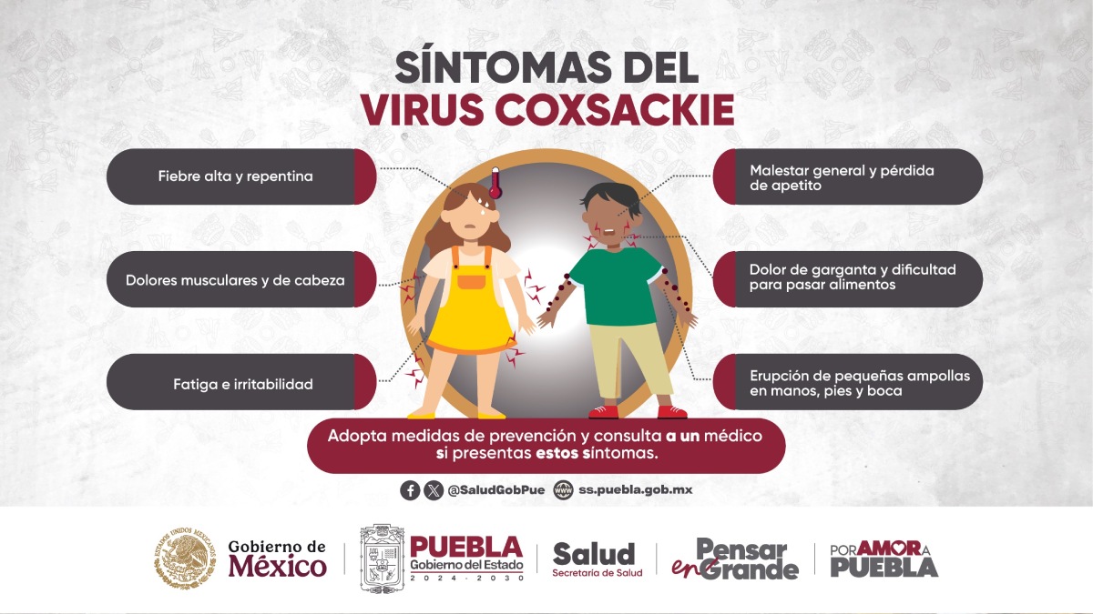 La Secretaría de Salud del estado de Puebla implementó un plan de acción inmediata para contener el reciente brote de virus coxsackie detectado en los municipios de Izúcar de Matamoros, Puebla, Tlachichuca y Libres.