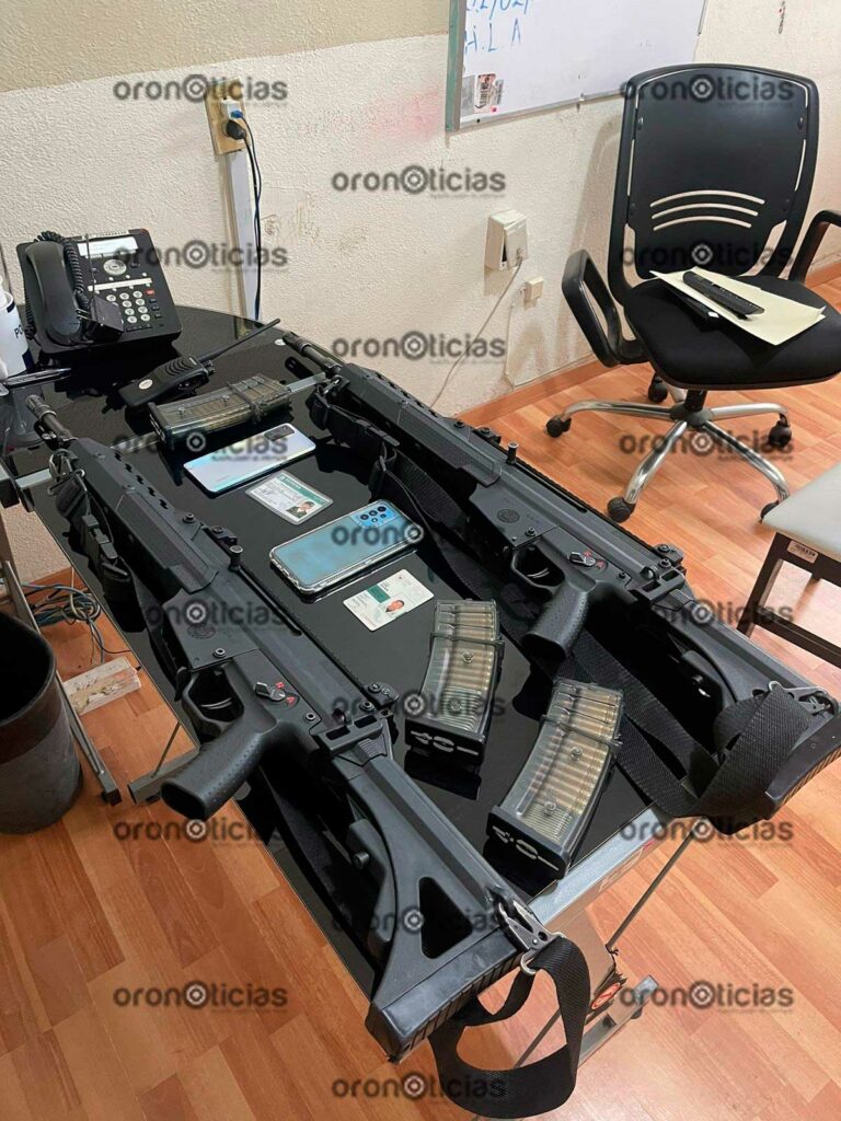 Cabe mencionar que en la inspección protocolaria al automóvil de los presuntos responsables fueron hallados un teléfono celular, un radio de comunicación, supuestas placas de la Policía Federal y armas de uso exclusivo de la SEDENA.