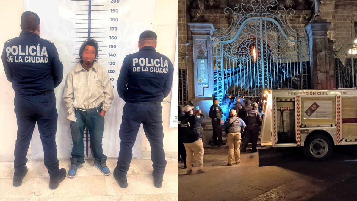 En el desarrollo de las diligencias, personal de la Dirección General de Emergencia y Respuesta Inmediata (DGERI) identificó una posible relación del detenido con los actos vandálicos registrados la madrugada del sábado en la Catedral de Puebla.