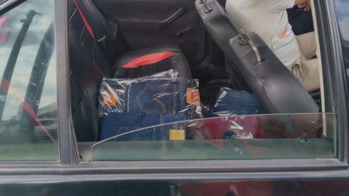 Los detenidos viajaban en un automóvil Jetta negro y fueron asegurados junto con las bolsas que contenían la ropa y las telas falsas, para ser presentados ante el Ministerio Público.