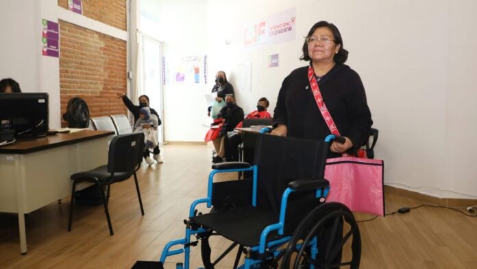 La entrega se llevó a cabo en las instalaciones de la Unidad Médica Integral (UMI) de San Baltazar Campeche, donde la señora Ángeles Juárez recibió una silla de ruedas para su mamá, Teresa Hernández, de 77 años de edad, quien presenta dificultades para moverse.