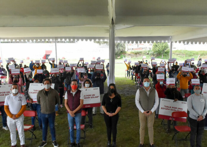 La alcaldesa de San Martín Texmelucan, Norma Layón, en compañía del Director General de Bienestar Social, Manuel Hernández Durán y el Director de Desarrollo Rural, Christian Gabriel Picazo Pérez, entregó calentadores solares y estufas ecológicas a familias en situación vulnerable del municipio.