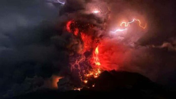 El monte Ruang, ubicado en la provincia de Célebes Septentrional, experimentó la erupción el martes por la noche y tuvo dos erupciones adicionales en la madrugada del miércoles.