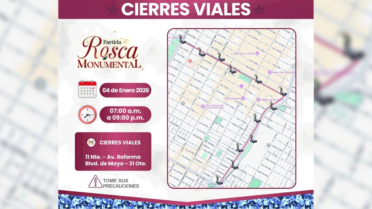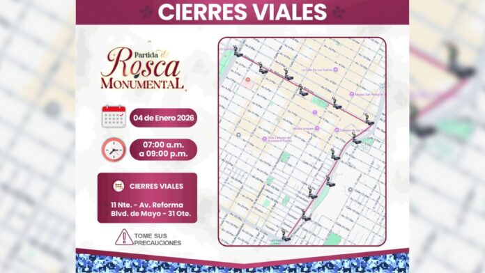 A partir de las 15:00 horas el paso vehicular se cerrará por completo junto con intersecciones, ya que se instalará la Rosca en su totalidad y personal de Récord Guinness iniciará con las mediciones de la rosca que deberán alcanzar los 6 kilómetros, puntualizó la SSC y el DIF Puebla Capital.