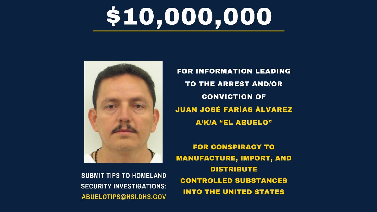 - 10 mdd por Juan José Farías Álvarez, “El Abuelo”, líder principal de “Cárteles Unidos”.
