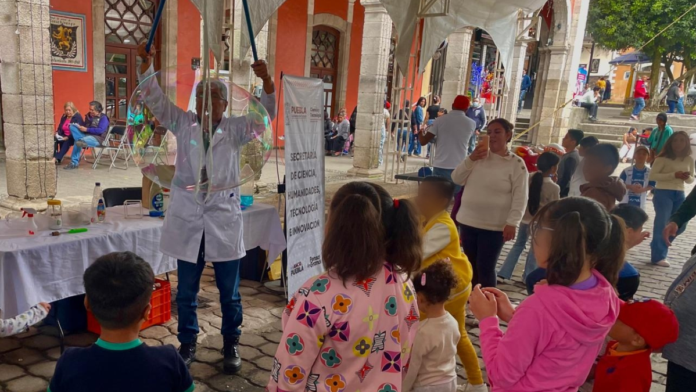 A través del personaje de “Doctor Burbuja”, interpretado por Pedro Ochoa Sánchez, se realizaron dinámicas lúdicas dirigidas a niñas y niños para enseñar ciencia de manera divertida, con burbujas para explicar conceptos como las propiedades de los líquidos y la geometría; de manera adicional, con la actividad de la Botella Whoosh o Cohete de Alcohol, se demostró cómo la combustión rápida libera gases y genera presión.