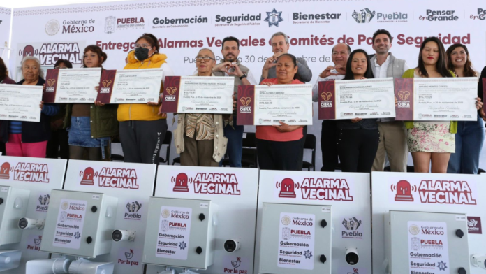 El gobierno del estado entregó nuevas Alarmas Vecinales a los Comités de Paz y Seguridad, además de apoyos del Programa de Obra Comunitaria, durante un evento en la colonia Loma Bella que reunió a autoridades estatales, federales y municipales. Las y los participantes destacaron que estas acciones consolidan la estrategia de seguridad impulsada por el gobernador Alejandro Armenta y fortalecen la organización vecinal en beneficio de miles de familias poblanas.