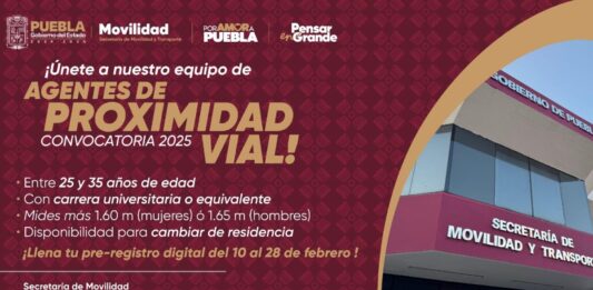 En cumplimiento de la estrategia del gobernador humanista Alejandro Armenta para fortalecer la seguridad vial en el estado, la Secretaría de Movilidad y Transporte (SMT) lanza la Convocatoria 2025 para integrar a nuevos Agentes de Proximidad Vial, a quienes se les brindará capacitación y oportunidades de crecimiento profesional. La secretaria Silvia Tanús Osorio refirió que … Sigue leyendo Gobierno estatal abre convocatoria para nuevos Agentes de Proximidad Vial