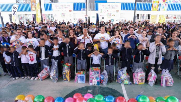 Nuevamente, Grupo Oro cumplió el sueño de niñas y niños con la entrega de juguetes donados por el auditorio y sus patrocinadores, ahora en la escuela primaria federal Emiliano Zapata, ubicada en la junta auxiliar de San Andrés Azumiatla.
