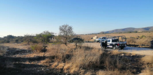 Policías municipales resguardan la zona, donde encontraron un mensaje con una supuesta amenaza junto al cadáver.
