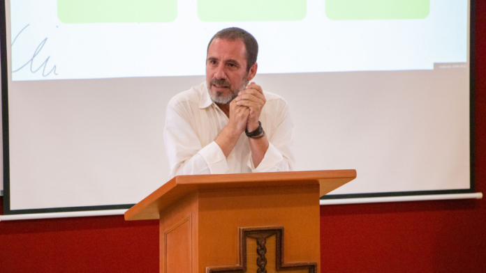 El doctor en Sociología y especialista en terapia corporal, Ángel Fernando de Dios Ríos, presentó su conferencia “Entre el plato y el espejo” en la IBERO Puebla como una charla necesaria ante la rampante obsesión por la superficialidad corporal de los últimos años. Para el ponente, la revisión histórica y contextual de la estética permite comprender las narrativas deshumanizantes de la imagen corporal.
