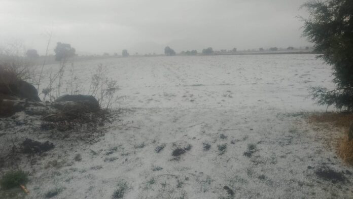 La tarde de este lunes, una intensa granizada sorprendió a pobladores de Aljojuca y del Valle de Serdán, dejando completamente cubiertas de blanco calles y terrenos de cultivo.