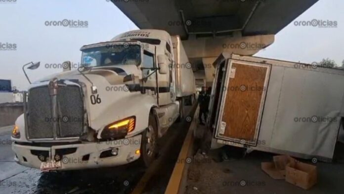 El hecho se presentó durante las primeras horas de este martes, cuando el tráfico se detuvo a la altura del Hospital de Traumatología y Ortopedia, debido a que un tráiler de doble remolque impactó contra una camioneta camper que quedó detenido en el camellón central.