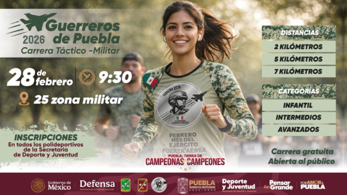 Gracias a que el deporte es política de Estado, el Gobierno del Estado de Puebla, en coordinación con la 25 Zona Militar y en el marco del mes del Ejército y la Fuerza Aérea Mexicanos, llevará a cabo la carrera Táctico Militar “Guerreros de Puebla” este 28 de febrero.