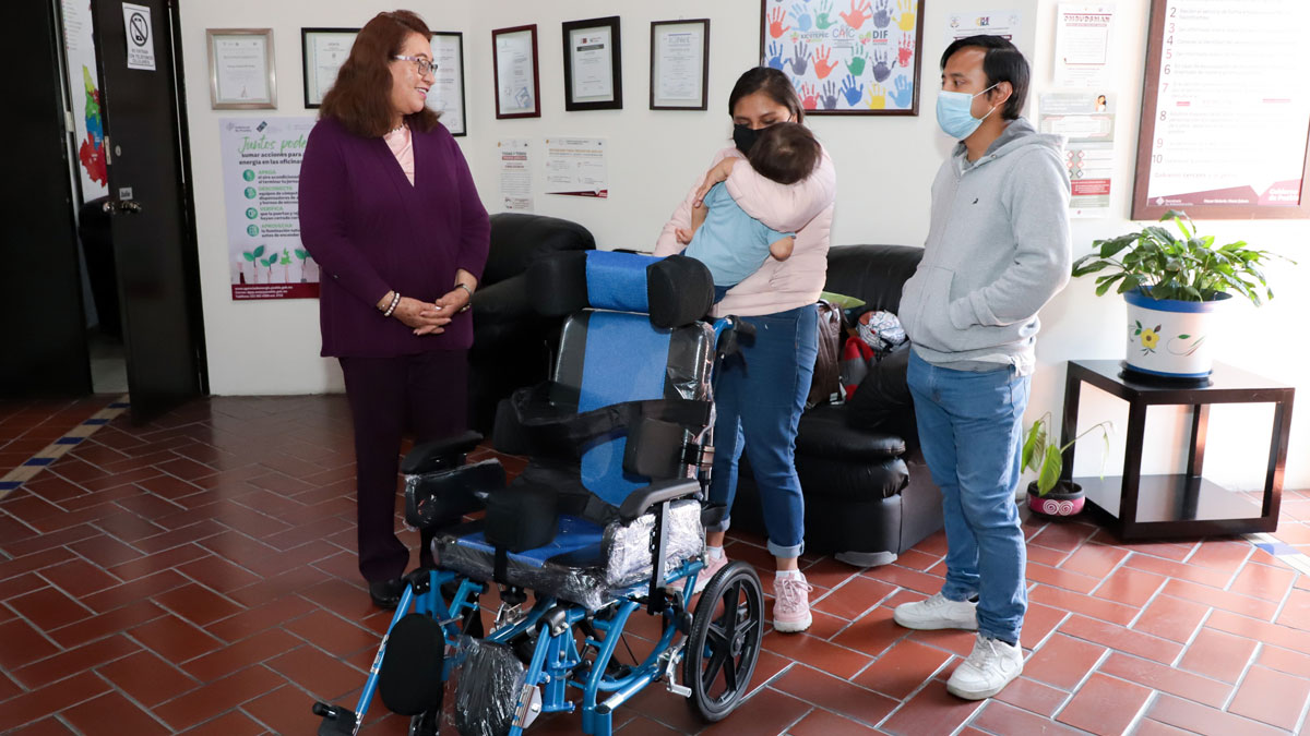 El Sistema para el Desarrollo Integral para la Familia del Estado de Puebla (SEDIF) otorgó una silla de ruedas infantil a el niño Kevin Pérez, originario del municipio de Tehuacán, con la que su familia podrá trasladarlo de manera segura y cómoda a sus terapias en el Centro de Rehabilitación e Inclusión Infantil Teletón (CRIT) Puebla.