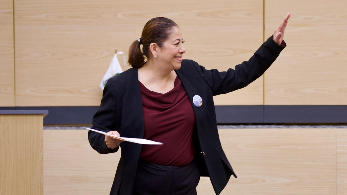 La coordinadora de la bancada de Morena fue despedida por las y los legisladores, quienes desde tribuna reconocieron su trabajo durante el último año y le desearon éxito en su próxima encomienda.