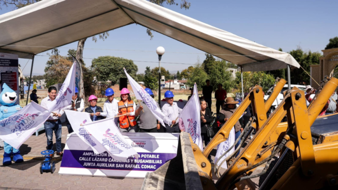 Con el propósito de asegurar un suministro equitativo, continuo y seguro de recursos hídricos para las familias sanandreseñas, la presidenta municipal, Lupita Cuautle Torres, dio el banderazo de inicio a la ampliación de red de agua potable en la calle Lázaro Cárdenas de la junta auxiliar de San Rafael Comac.