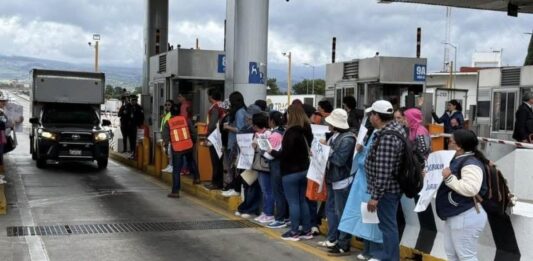 Maestros toman caseta de Chalco y dan paso libre en la México-Puebla