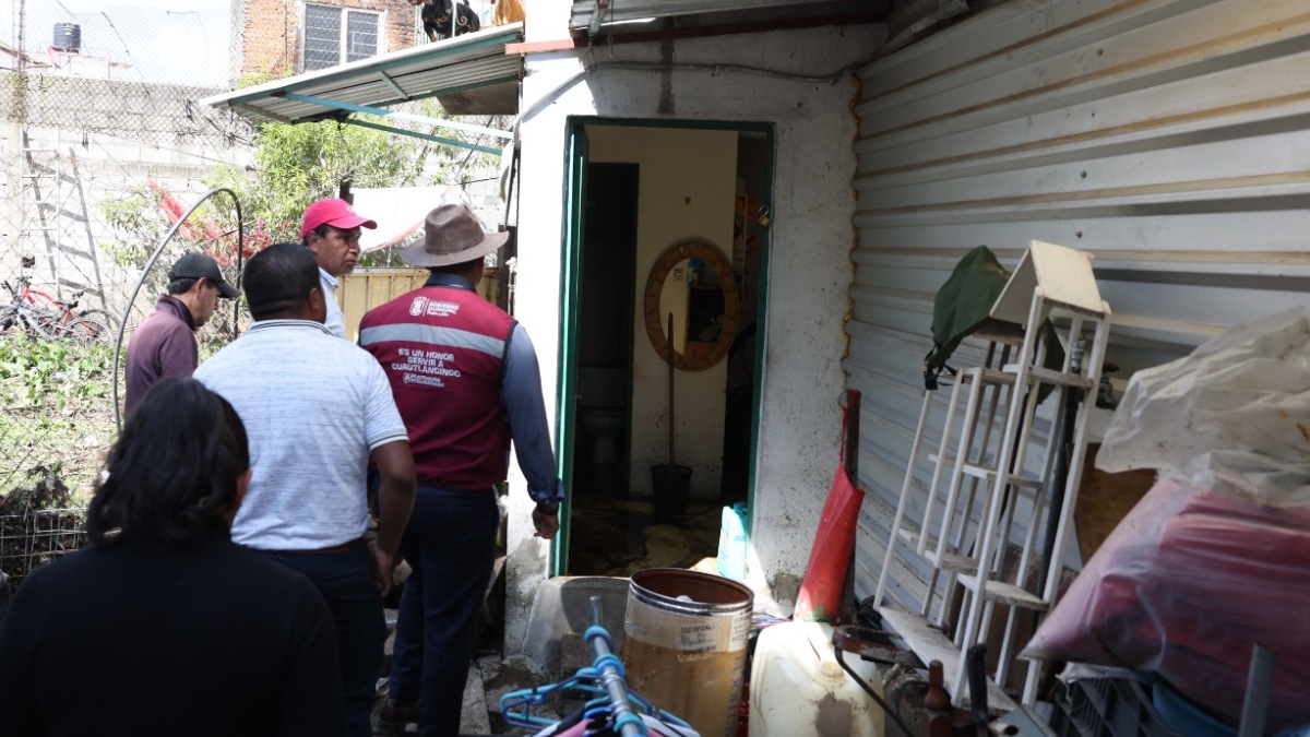 Desde la calle Revolución y Benito Juárez de la colonia San Miguel Apetlachica, el alcalde expresó que se está haciendo un recuento de los daños así como entregando despensas e hipoclorito a las familias afectadas.