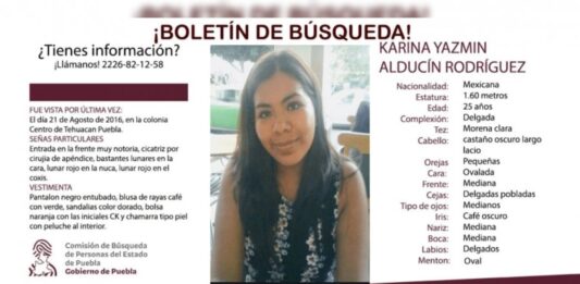 El Colectivo Voz de los Desaparecidos en Puebla informó que Óscar N. fue sentenciado por un tribunal federal a 51 años, seis meses y 22 días de prisión por la desaparición de Karina Alducín, quien fue vista por última vez en Tehuacán en 2016 y sigue sin ser hallada. A través de redes sociales, la … Sigue leyendo Óscar N es sentenciado a 51 de años de prisión por desaparición de Karina Alducín