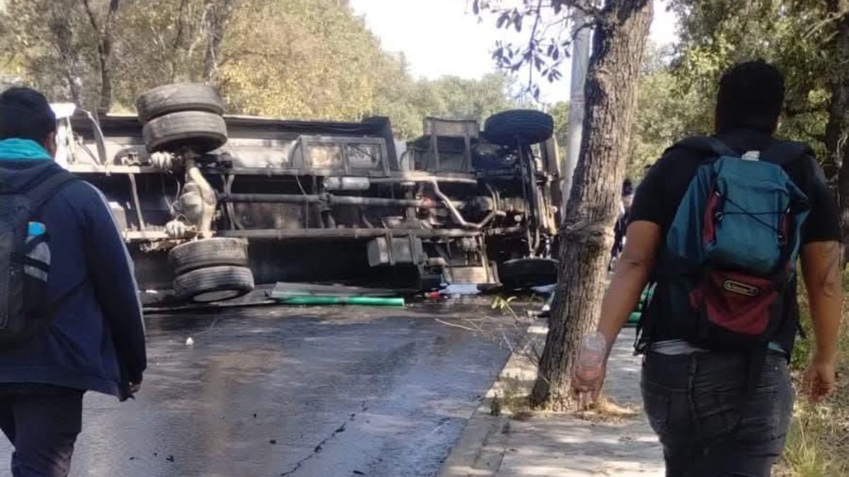 El percance ocurrió alrededor de las 02:30 p. m., cuando, según testigos, el conductor de una pipa de agua perdió el control de la unidad tras quedarse sin frenos. El vehículo dio al menos dos giros antes de terminar volcado, obstruyendo por completo el paso para los automóviles que circulaban por la zona.