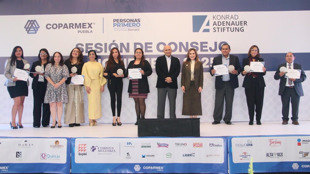 Por su parte, la presidenta de Coparmex Puebla, Beatriz Camacho Ruiz, afirmó ante los integrantes de la cámara y representantes de compañías acreedoras de los distintivos “Empresa Digna” y “Derechos Humanos”, la necesidad de fortalecer la colaboración estratégica con universidades, organizaciones sociales y autoridades, a fin de consolidar una ruta que genere más inversión, empleos con calidad y formación técnica de alto nivel.