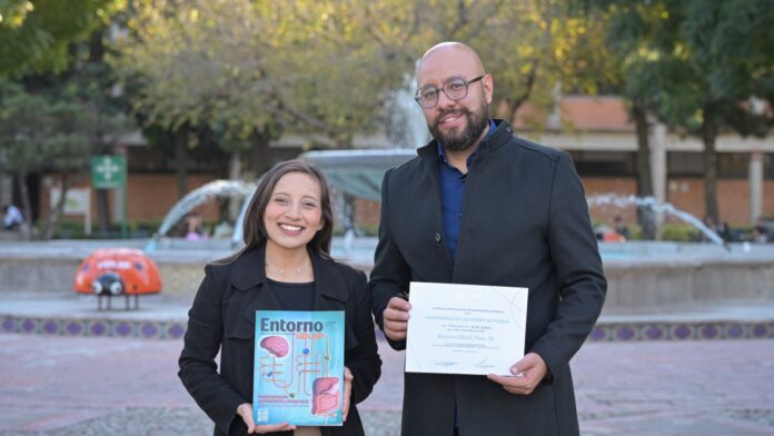 En una ceremonia celebrada en el Castillo de Chapultepec, Angélica Cabañas Ramírez, diseñadora e ilustradora y Willy Daniel Sepúlveda Juárez, diseñador de la Editorial UDLAP, recibieron el reconocimiento que celebra el esfuerzo creativo y la calidad visual de esta edición. “Para esta revista desarrollamos una propuesta ilustrativa más lúdica y accesible que permitiera al público acercarse con mayor facilidad a contenidos científicos complejos. Buscamos generar una portada atractiva y un concepto visual que facilitara la lectura y la comprensión de los artículos”, señaló Angélica Cabañas Ramírez.