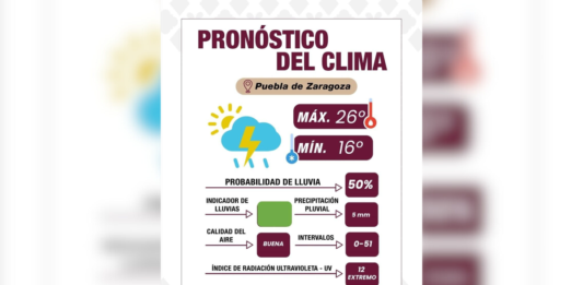 Sábado parcialmente nublado y UV extremo en capital poblana