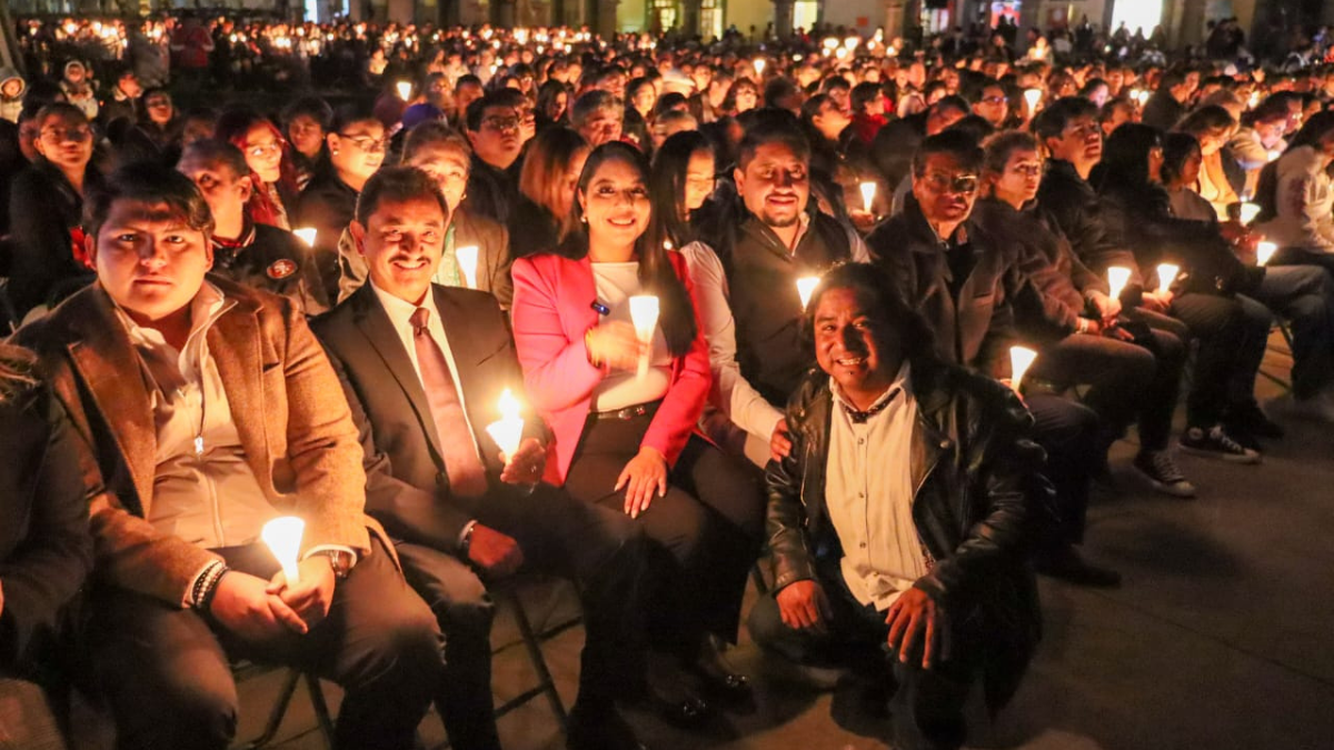 En punto de las 20:00 horas, el primer cuadro de la ciudad quedó a oscuras, dando paso a velas y antorchas que envolvieron de misticismo la Plaza de la Concordia y marcaron el inicio del Concierto de Campanas, apreciado en silencio por cientos de asistentes.