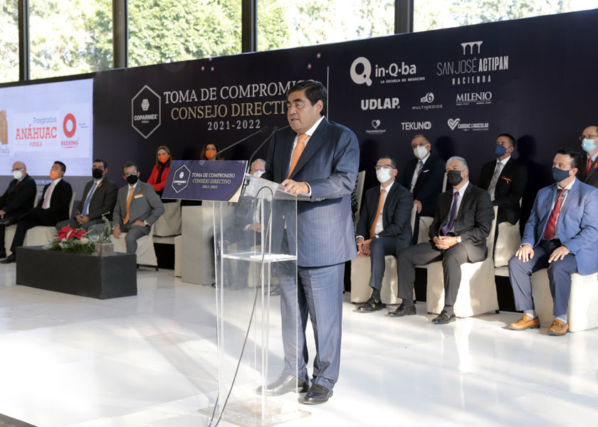 Lo anterior lo dijo el jefe del Ejecutivo estatal durante su participación en la Toma de Compromiso del Consejo Directivo de la Confederación Patronal de la República Mexicana Coparmex Puebla 2021-2022.