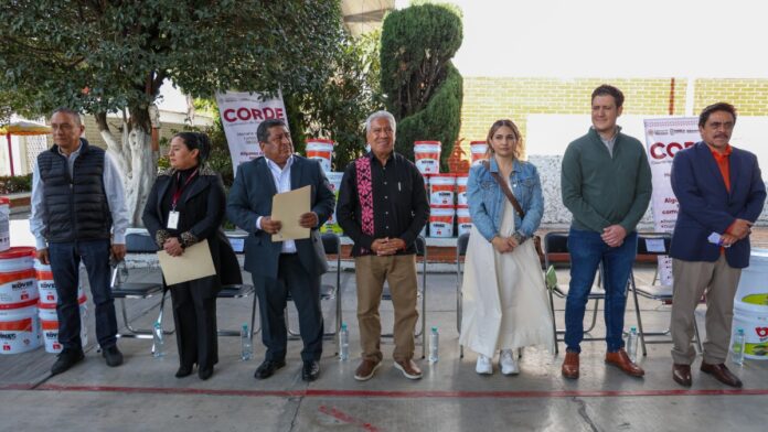 Escuelas de nivel preescolar, primaria y secundaria de 24 microrregiones recibieron botes de pintura e impermeabilizante, lo anterior en cumplimiento al compromiso del gobernador Alejandro Armenta con la comunidad educativa (madres, padres y/o tutores, estudiantes y trabajadores de la educación).