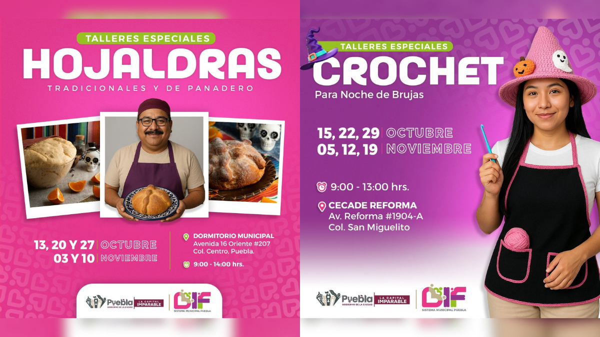 El Sistema Municipal DIF (SMDIF) de Puebla Capital anunció la apertura de inscripciones para los talleres “Hojaldras Tradicionales” y “Crochet para Noche de Brujas”, que se impartirán durante octubre y noviembre.