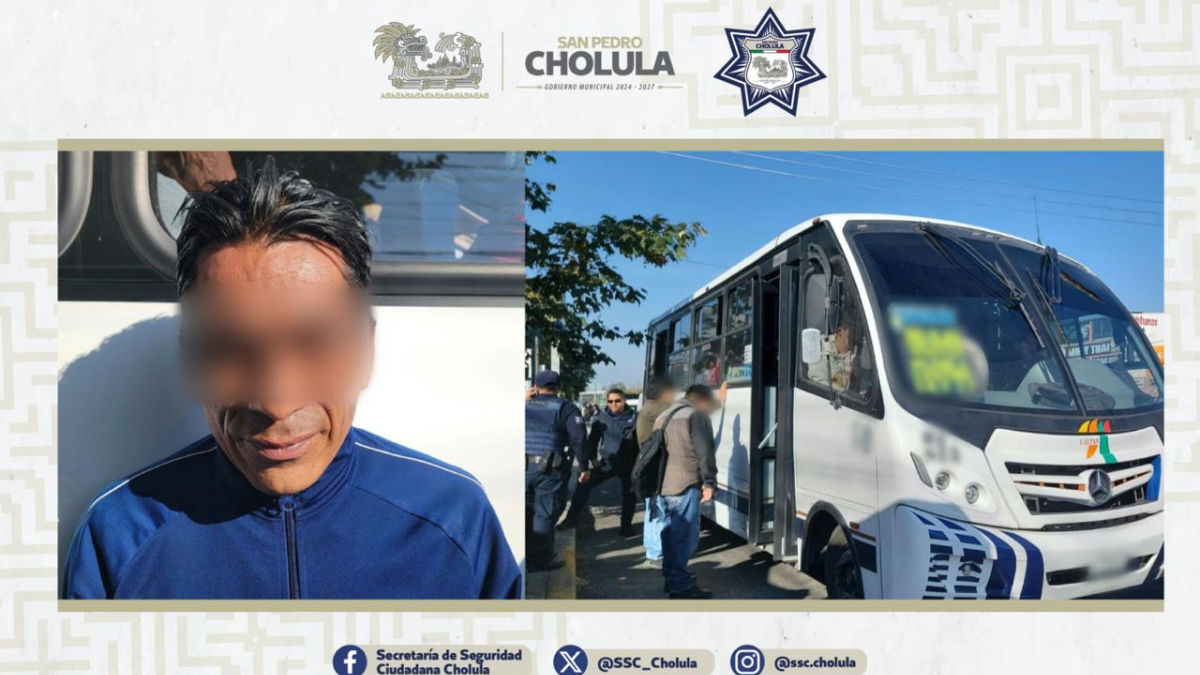 Elementos de la Policía Estatal, en coordinación con la Secretaría de Seguridad Ciudadana de San Pedro Cholula (SSC Cholula), atendieron un reporte sobre la posible comisión de un hecho ilícito a bordo de una unidad de transporte público que circulaba sobre Bulevar Forjadores.