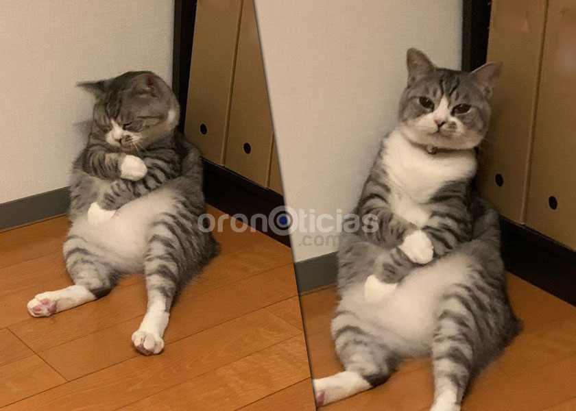 Un tierno gatito se hizo el protagonista de algunos memes, pues se quedó dormido con sus ojos cerrados, panza arriba y una pata sobre la otra, como si se la estuviera sobando.