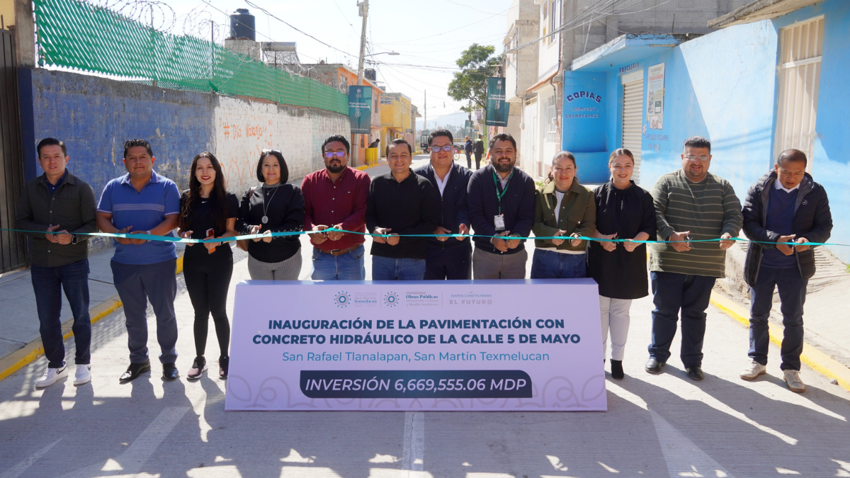 El Gobierno Municipal de San Martín Texmelucan, que preside Juan Manuel Alonso Ramírez, inauguró la pavimentación con concreto hidráulico de la calle 5 de Mayo en la junta auxiliar de San Rafael Tlanalapan con una inversión superior a los 6 millones 600 mil pesos, beneficiando a más de 20 mil pobladores.