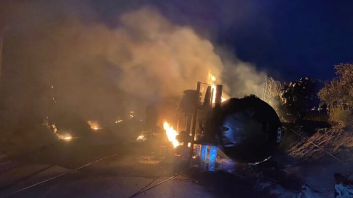 El accidente ocurrió alrededor de las 4:30 a.m.; presuntamente, el conductor perdió el control de la unidad a la altura del kilómetro 204. El vehículo volcó sobre uno de sus costados, provocando un incendio, ya que transportaba material peligroso.