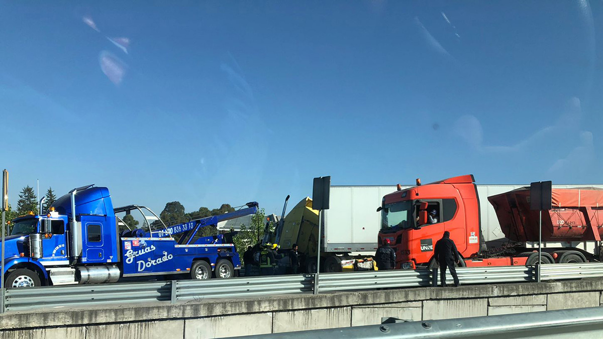 El conductor de un tráiler que manejaba sobre el Periférico Ecológico perdió el control y casi cae del distribuidor hacia la lateral.